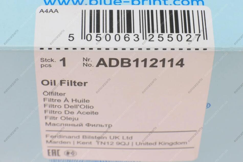 Фильтр масляный BMW 1 (F20/ F21)/ 3 (F30/ F31) 114-320 i 11- BMW F20, F30, F21, F31 BLUE PRINT ADB112114