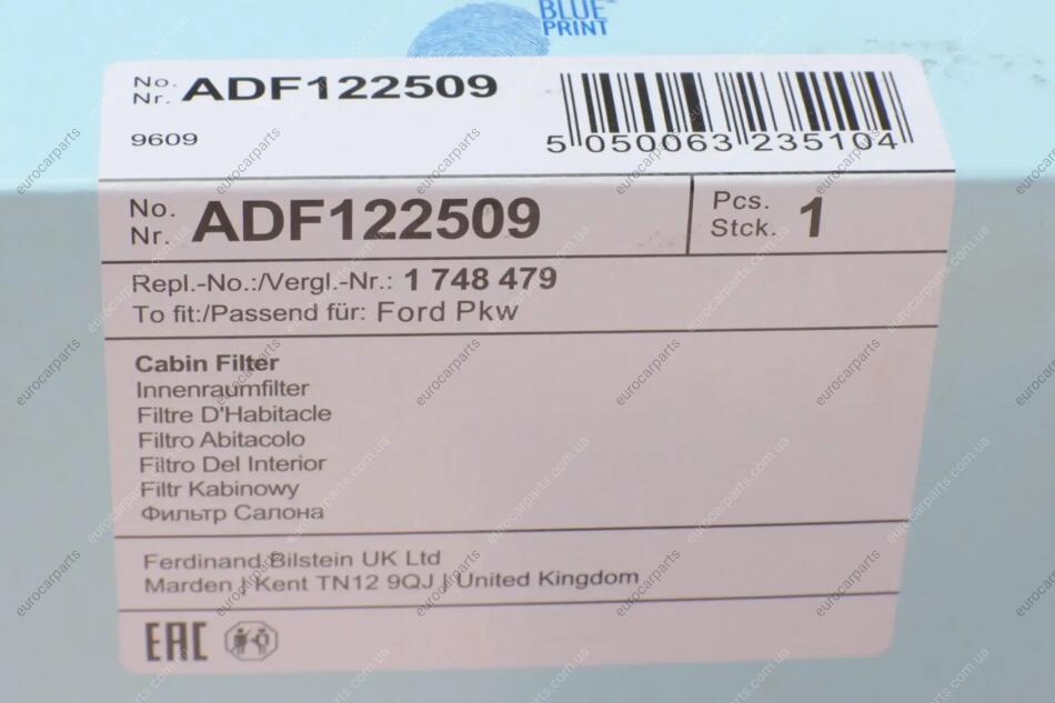 Сменный фильтрующий элемент воздушного фильтра салона Ford Transit BLUE PRINT ADF122509