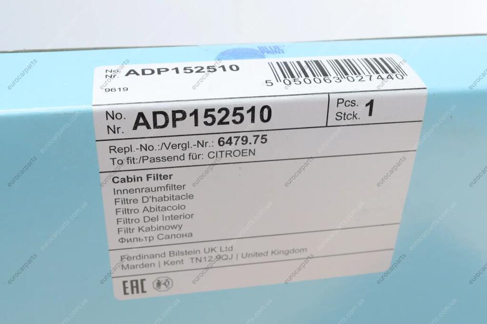 Фильтр салона Citroen C2/C3/C4/Peugeot 307/308 00- (угольный) Citroen C4, C3, Peugeot 308, Citroen DS4, Peugeot 307, Citroen C2 BLUE PRINT ADP152510