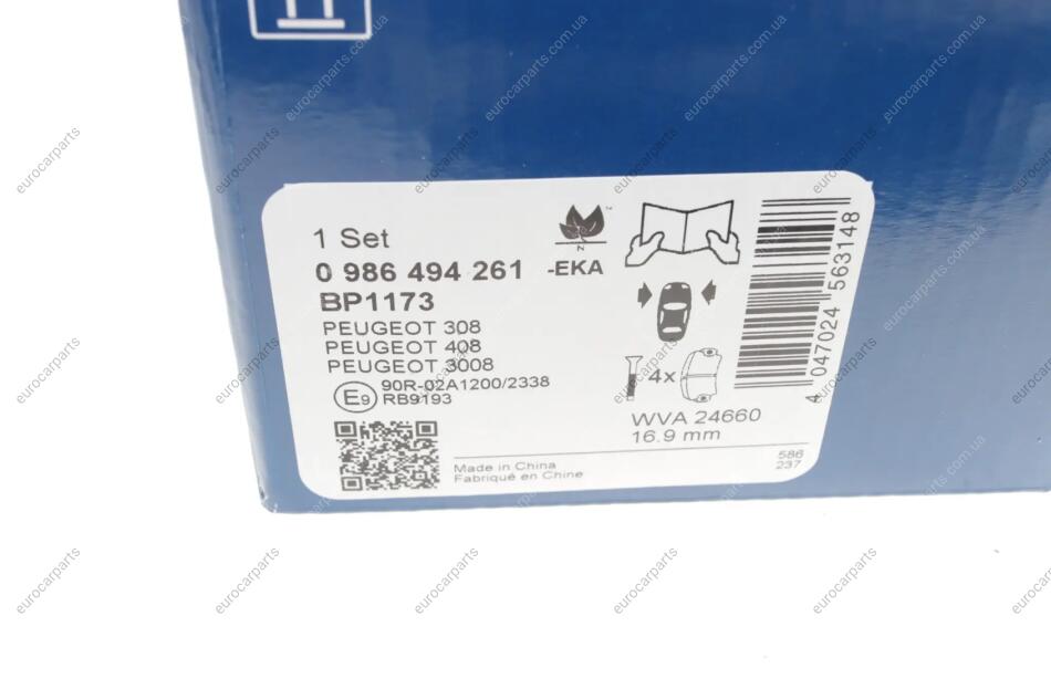 Тормозные колодки дисковые Peugeot 308, 408, 3008 BOSCH 0 986 494 261