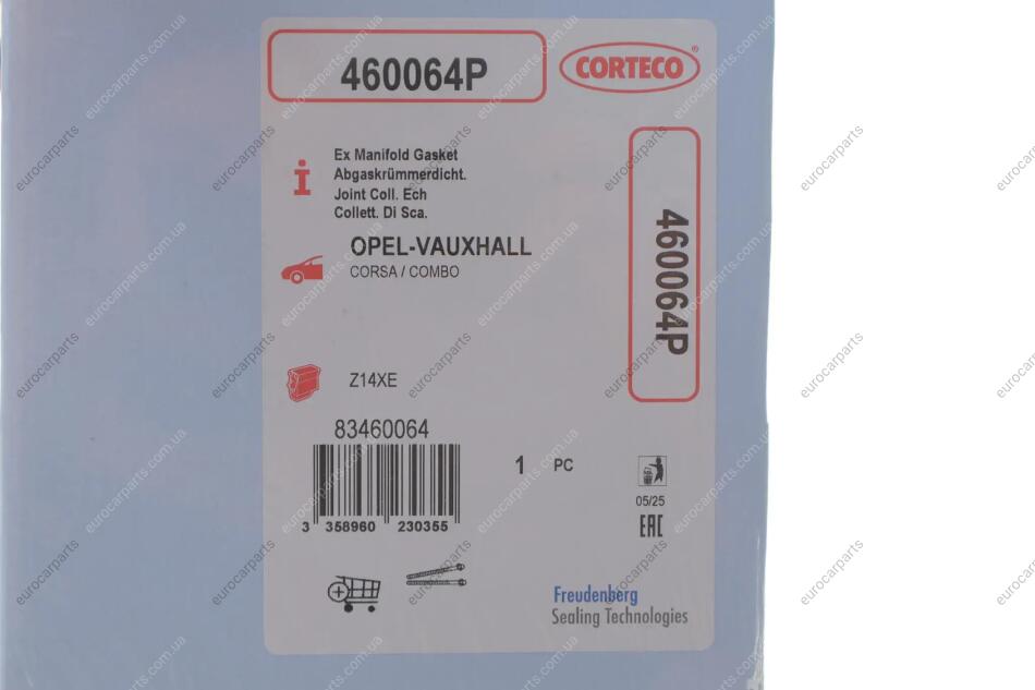 Прокладка колектора випускного Opel Combo 1.6 CNG 05- Opel Vectra, Astra, Zafira, Corsa, Meriva, Combo CORTECO 460064P