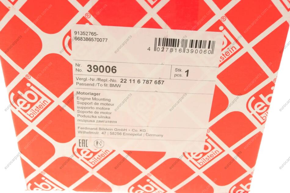 Подушка двигателя (L) BMW 1 (F20)/3 (F30) 1.5-2.0D 11- (N47) BMW F20, F30, F31, F21 FEBI BILSTEIN 39006