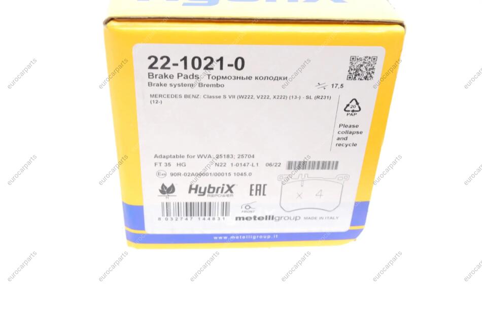 Комплект тормозных колодок (дисковых).) Mercedes W222 Metelli 22-1021-0