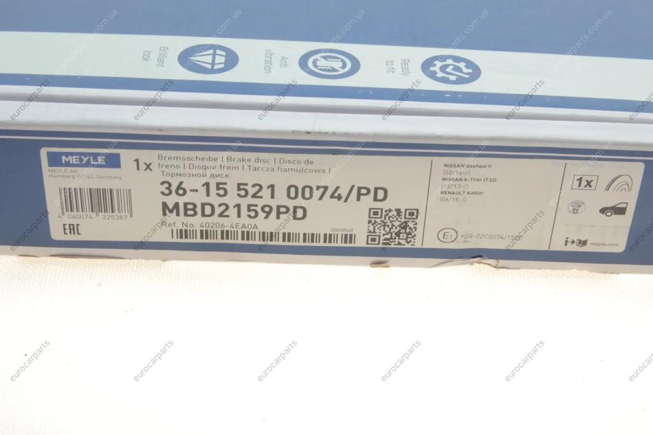 Диск тормозной (передний) Nissan Qashqai II/X-trail 13-/ Leaf 14-/ Renault Kadjar 13- (296x26) Nissan Leaf, Qashqai, X-Trail, Renault Kadjar, Koleos MEYLE 36-15 521 0074/PD