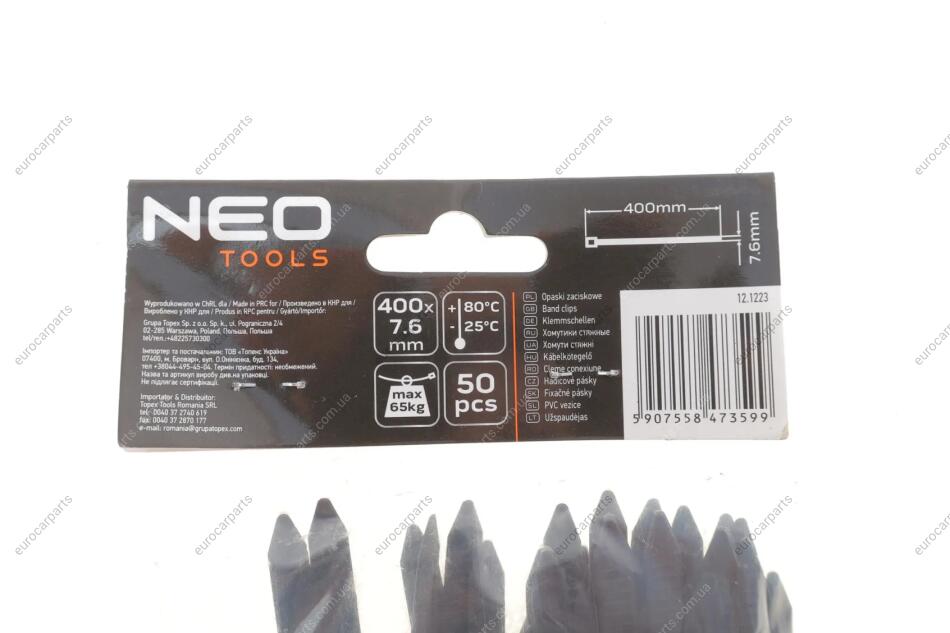 В интернет-магазине можно купить автозапчасти Набір стяжок пластикових EXTREME 7,6x400 мм 50 од. (чорна) NEO TOOLS для автомобиля такими способами: