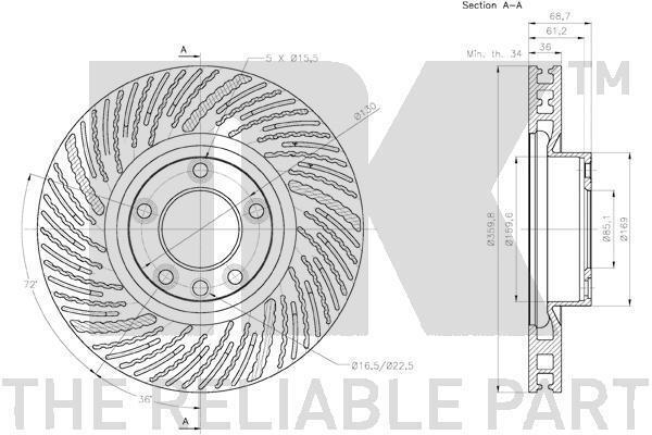 Для тормозного диска толщиной [мм]: 36