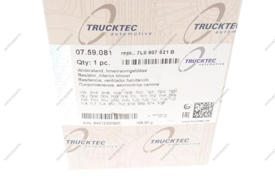 Реостат AUTOMOTIVE Volkswagen Sharan, Audi Q7, Volkswagen Amarok, Transporter, Touareg, Multivan TRUCKTEC 07.59.081