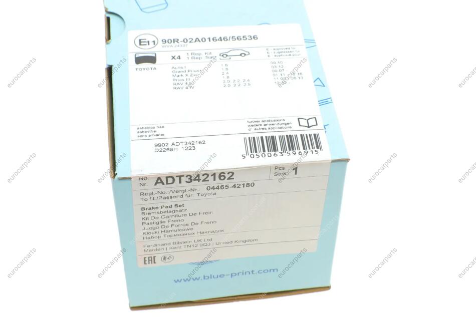 Колодки гальмівні (передні) Toyota RAV4 2.0-3.5/Prius 1.8 05- Toyota Rav-4, Prius, Auris BLUE PRINT ADT342162