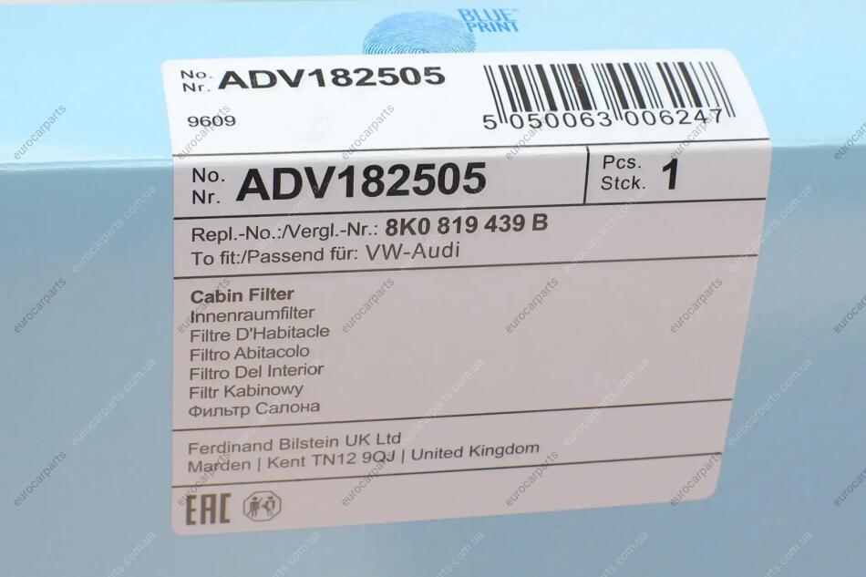 Фільтр салону Audi A4/A6 1.8-4.2TFSI 07- (вугільний) Audi A5, Q5, A4 BLUE PRINT ADV182505