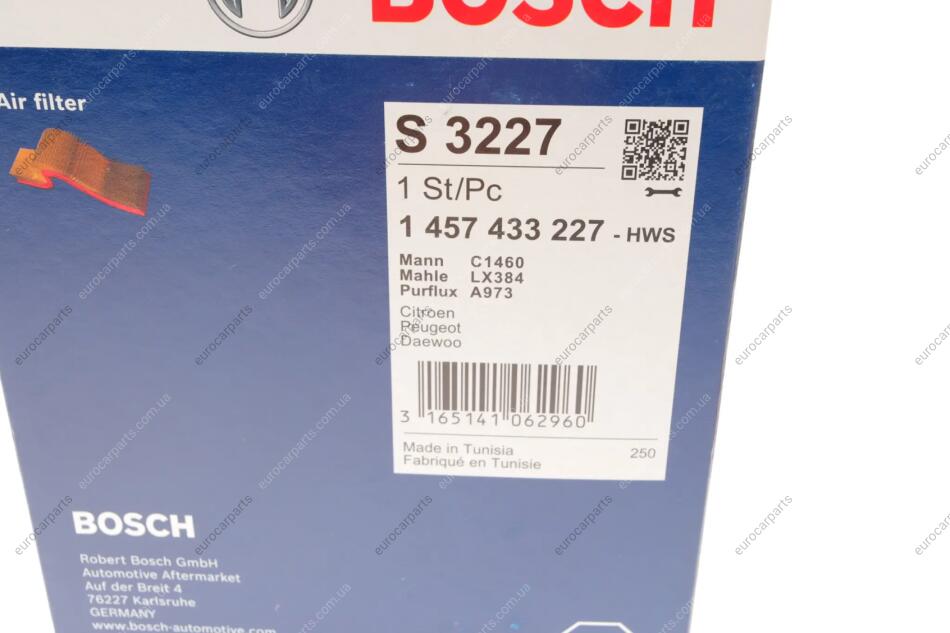 Фільтр повітряний Citroen Berlingo/Peugeot Partner 1.1i 96- Citroen AX, Peugeot 205, 405, 106, 306, Citroen SAXO, Berlingo, Peugeot Partner, Citroen Xsara BOSCH 1 457 433 227