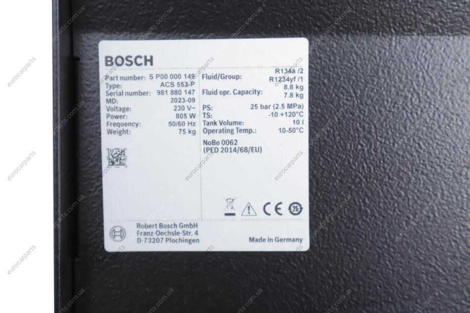 Характеристики про Пристрій автоматичного обслуговування кондиціонерів ACS 553 P R134a, BOSCH SP00000149