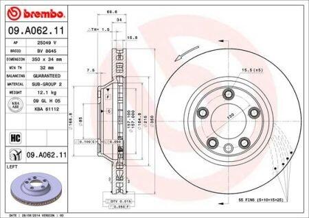 Диск гальмівний Porsche Cayenne, Audi Q7, Volkswagen Touareg BREMBO 09.A062.11