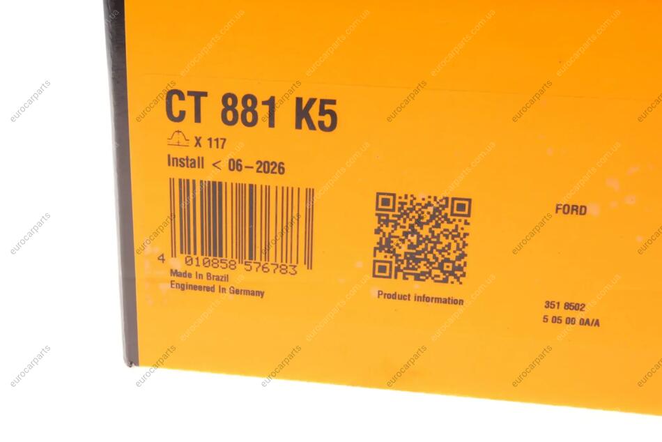 Комплект ременя ГРМ Ford Focus III C-Max II 1,6ti 11>, Fiesta 1,25-1,6i 08/09> Ford C-Max, Mondeo, Focus, Fiesta, Fusion, Mazda 2, Volvo S40, V50, C30, Ford Ecosport, B-Max Contitech CT881K5