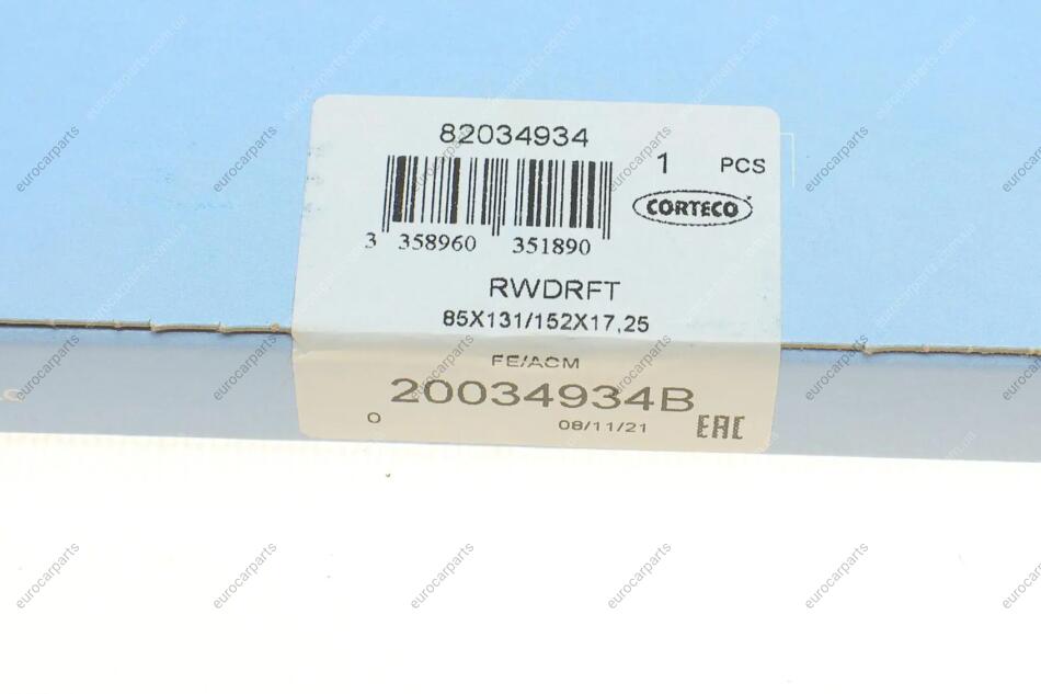 Сальник колінвалу (задній) VW Caddy 1.6/2.0TDI/T5 2.0TDI (85x131/152x17.25) Volkswagen Passat, Seat Leon, Volkswagen Transporter, Multivan, Golf, Skoda Octavia, Volkswagen Jetta, Skoda Roomster, Superb, Yeti, Audi A6 CORTECO 20034934B