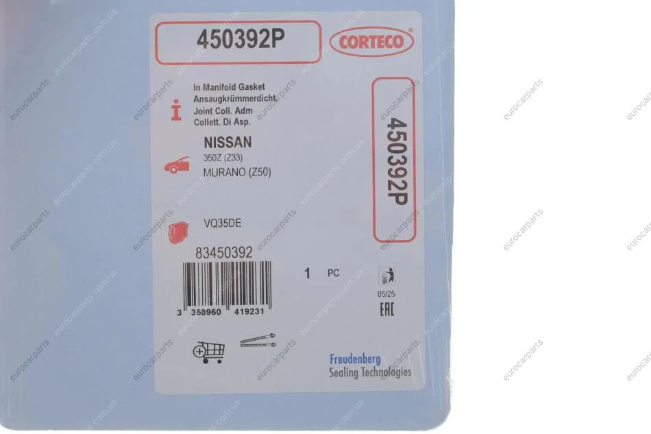 Купити Прокладка впускний колектор NISSAN 3,5 V6 VQ35DE (2) Nissan Murano, CORTECO 450392P для ремонту вашого авто. Співпрацюємо як з приватними клієнтами, так і з майстернями
