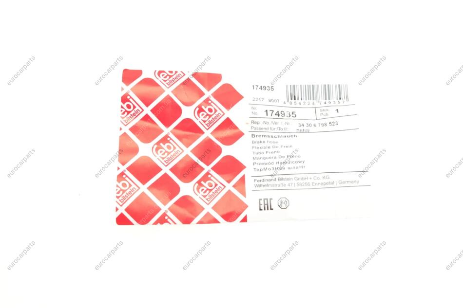 Шланг гальмівний (задній) BMW 1 (E81/E87)/3 (E90)/X1 (E84) 04-15 BMW E91, E90, E82, X1, E92, E93, E81, E88, E87 FEBI BILSTEIN 174935