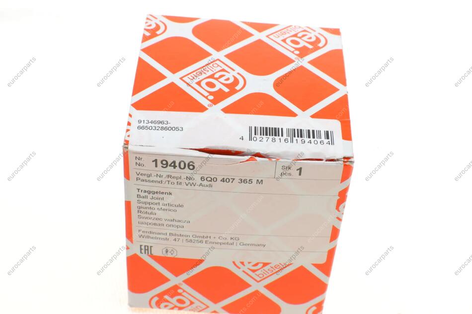 Опора кульова (передня/знизу/L) Skoda Fabia/VW Polo 1.2/1.9TDI 99-15 Skoda Fabia, Roomster, Audi A2, Volkswagen Polo, Seat Ibiza, Cordoba FEBI BILSTEIN 19406