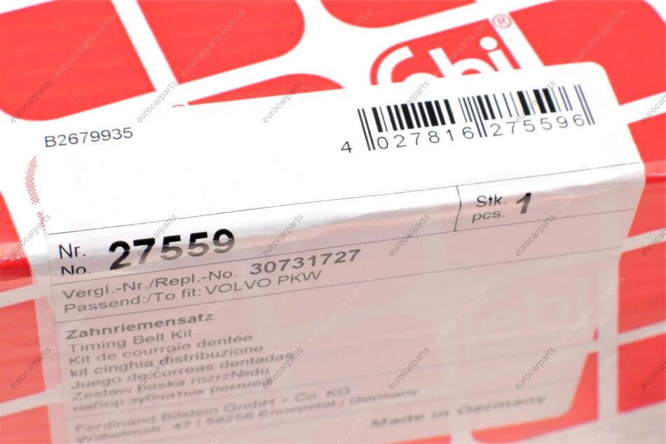 Комплект ременя ГРМ Volvo S40, V40, V70, C70, S80, S60, XC90, XC70, V50, Ford Focus, S-Max FEBI BILSTEIN 27559