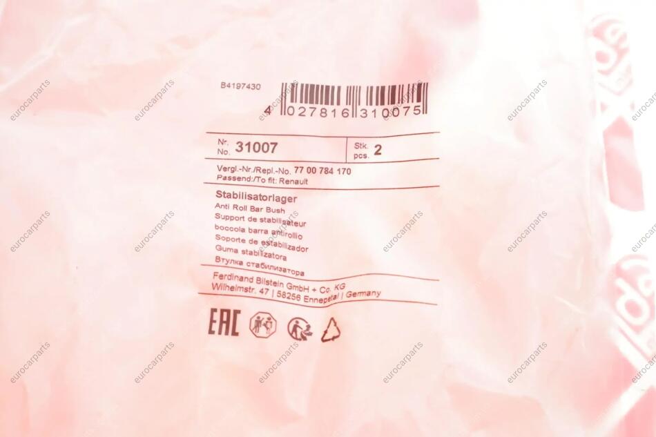 Втулка стабілізатора (переднього/наружного) Renault Kangoo/Megane 98-03 (d=23mm) Renault 19, Clio, Megane FEBI BILSTEIN 31007