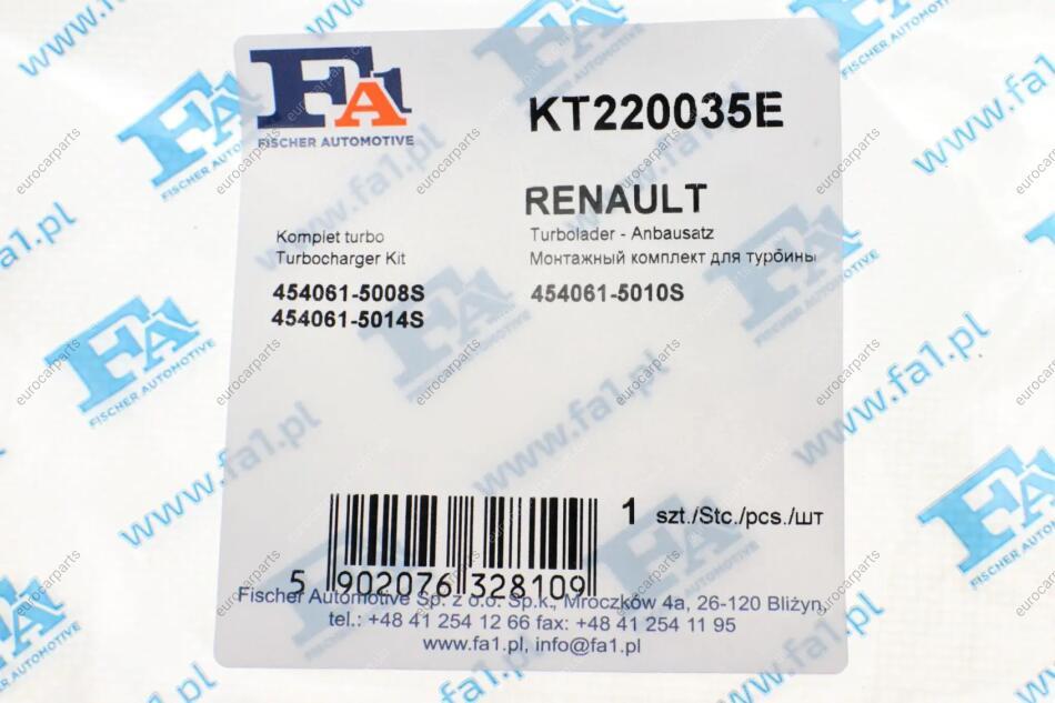 Комплект прокладок турбіни Renault Master 2,8 dCi 98-01 Renault Master, Opel Movano Fischer Automotive One (FA1) KT220035E