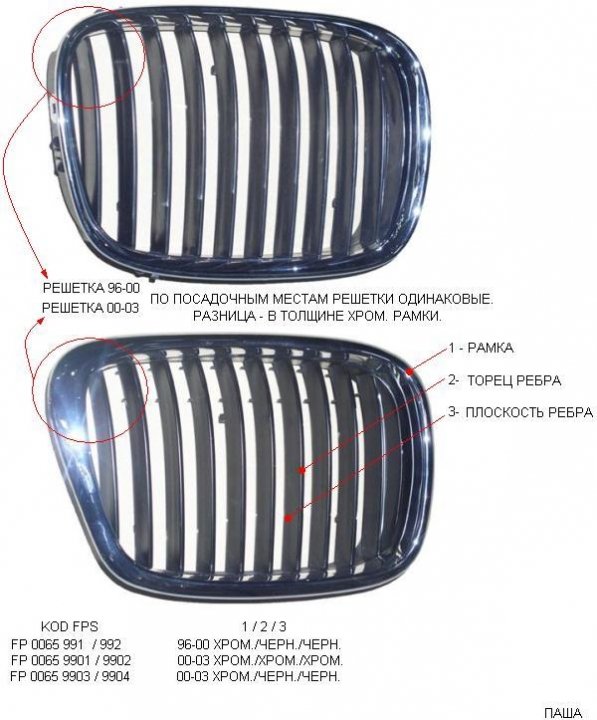 Запасна частина Решітка пластикова FPS ідеально підходить для таких моделей автомобілів: BMW E39 (БМВ E39).