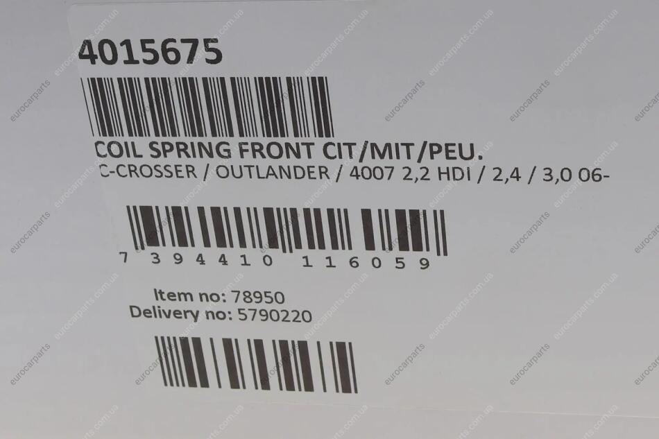 Пружина (передня) Mitsubishi Outlander 2.0-2.2DI-D/2.4-3.0 4WD/Peugeot 4007 2.2HDi/2.4 (АКПП) 06-13 LESJOFORS 4015675