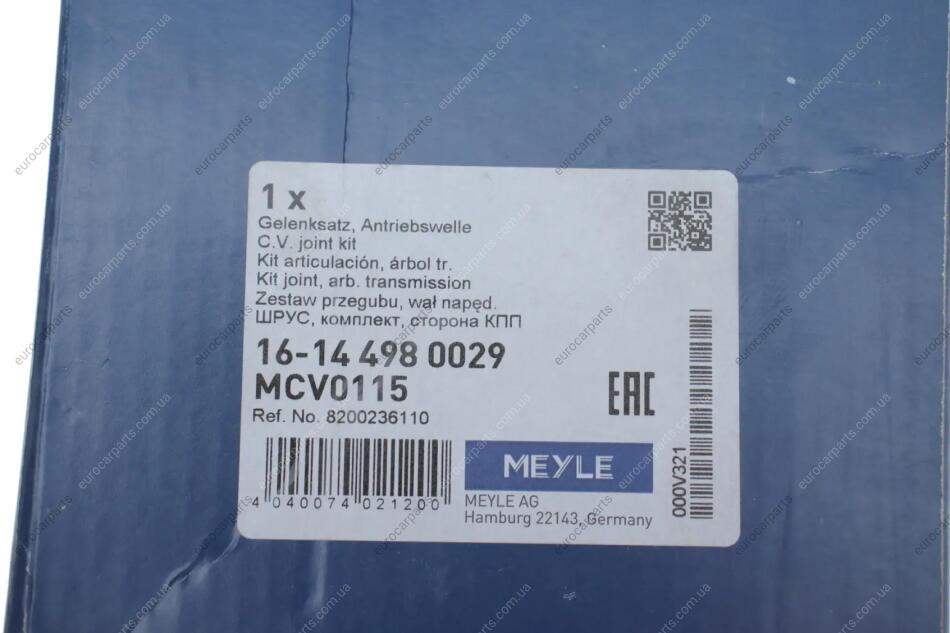 ШРКШ (зовнішній) Renault Kangoo 1.5DCI 01- (23/30) Renault Megane, Scenic, Kangoo, Nissan Kubistar MEYLE 16-14 498 0029