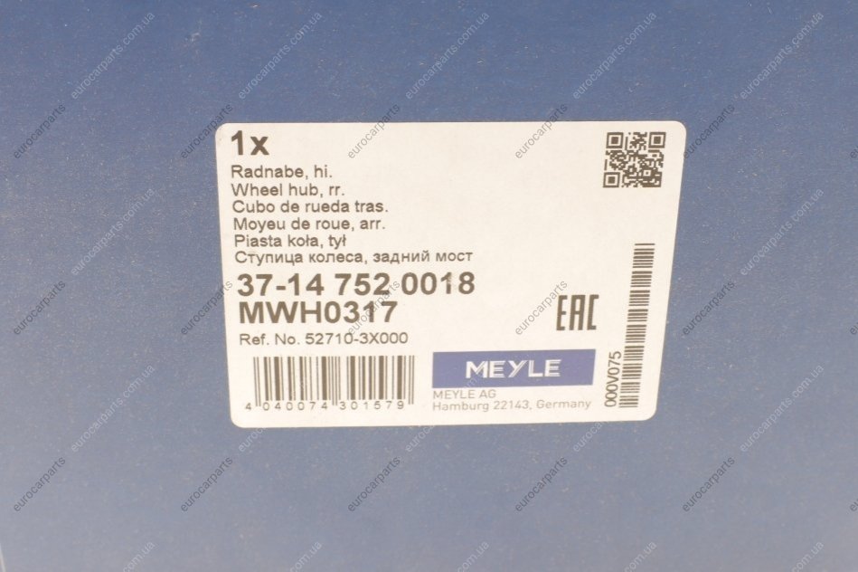 Підшипник маточини (задньої) Hyundai Elantra/Kia Cerato 1.6/1.8 CRDi 10- Hyundai Veloster, Elantra MEYLE 37-14 752 0018