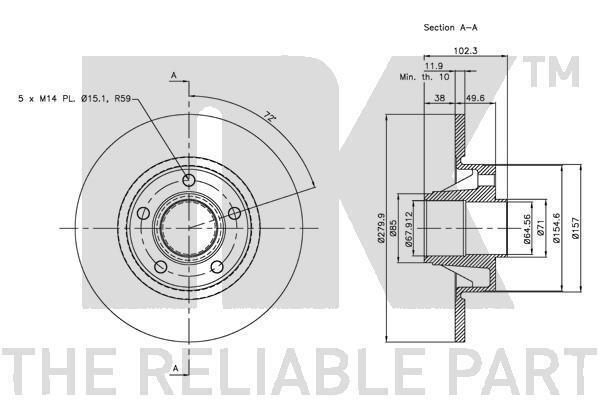Диск гальмівний невентильований Renault Trafic, Nissan Primastar, Opel Vivaro NK 313647
