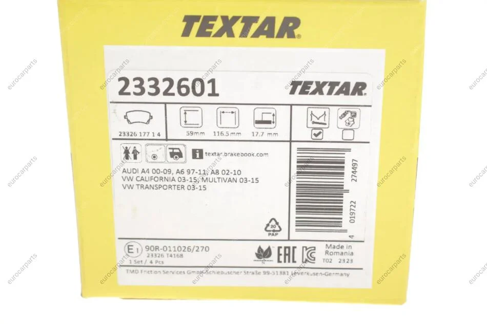 - Товар TEXTAR 2332601 підходить до таких марок/моделей авто: