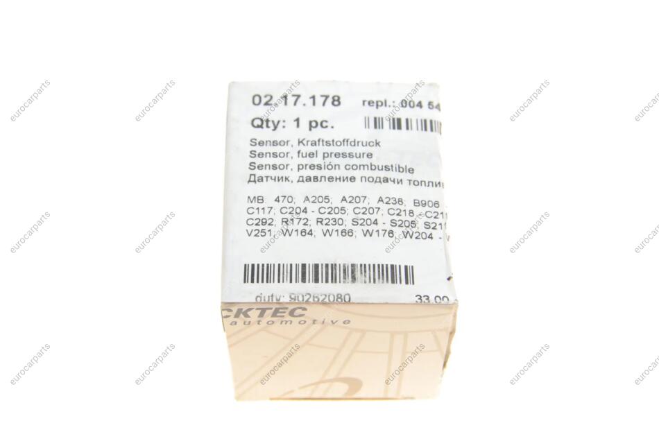 Характеристики про Датчик тиску палива MB Sprinter 906/907/910/Vito (W639/W447) 06- Mercedes CLS-Class, G-Class, W906, W251, W204, Vito, Jeep Compass, Mercedes W221, S204, W212, C204, TRUCKTEC 02.17.178