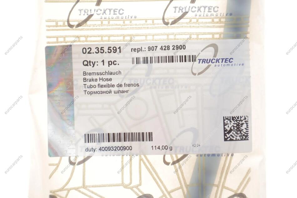 Купити Шланг гальмівний (передній) MB Sprinter 907/910 2.0/2.2/3.0D 18- Mercedes W907, W910, TRUCKTEC 02.35.591 для ремонту вашого авто. Співпрацюємо як з приватними клієнтами, так і з майстернями
