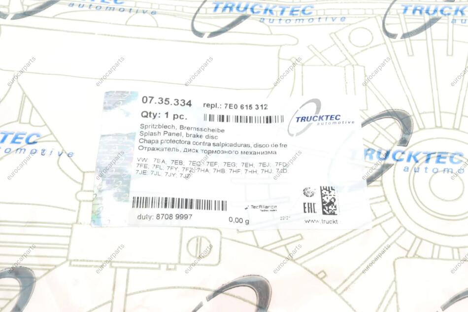 Захист диска гальмівного (переднього) (R) VW T5 03- Volkswagen Transporter TRUCKTEC 07.35.334