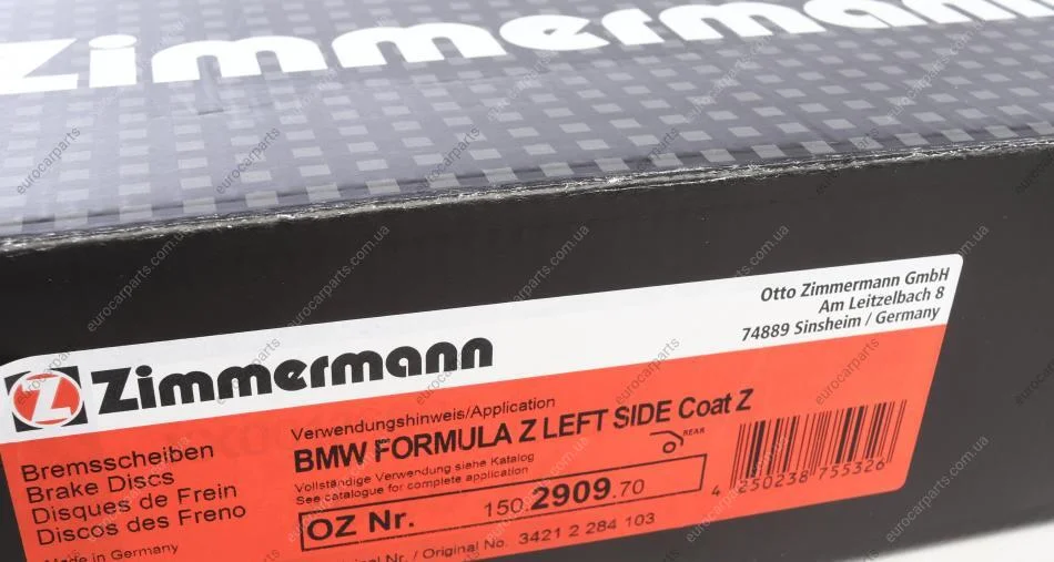 Диск гальмівний FORMULA Z лівий BMW F13, F12, F10, F06 ZIMMERMANN 150290970